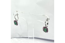 9K WHITE GOLD GREEN EMERALD PINK SAPPHIRE DIAMOND...