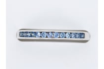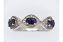 14K WHITE GOLD, BLUE SAPPHIRE AND DIAMOND,...