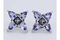 14K WHITE GOLD, BLUE SAPPHIRE AND DIAMOND, FLORAL...