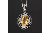 Citrine Oval Exquisite 925 Silver with Rhodium...