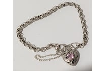 STERLING SILVER PADLOCK BRACELET WITH PINK STONE...
