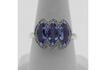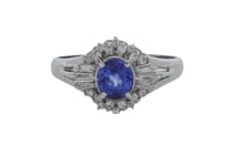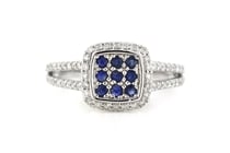 10K WHITE GOLD, BLUE SAPPHIRE AND DIAMOND,...