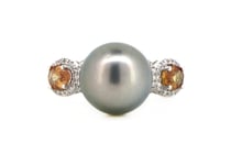 14K WHITE GOLD, GREY CULTURED TAHITIAN PEARL,...