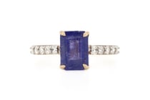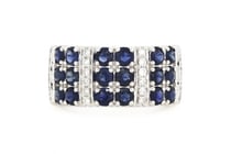 14K WHITE GOLD, BLUE SAPPHIRE AND DIAMOND, DRESS...