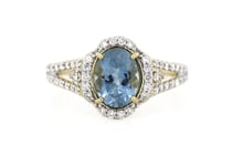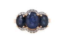 14K ROSE GOLD, BLUE SAPPHIRE AND DIAMOND, HALO...