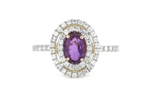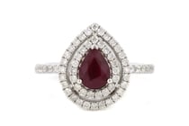 14K WHITE GOLD, RUBY AND DIAMOND, DOUBLE HALO...