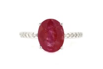 14K WHITE GOLD, RUBY AND DIAMOND, CLASSIC RING....