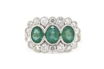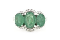 14K WHITE GOLD, EMERALD AND DIAMOND, HALO TRILOGY...
