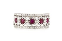 14K WHITE GOLD, RUBY AND DIAMOND, MULTI-ROW...