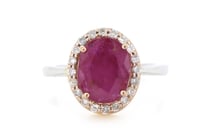 14K ROSE/WHITE GOLD, RUBY AND DIAMOND, HALO RING....