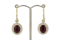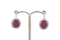 14K WHITE GOLD, RUBY AND DIAMOND, HALO DROP...