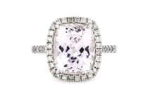 14K WHITE GOLD, KUNZITE AND DIAMOND, HALO RING....