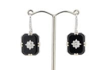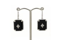 14K WHITE GOLD, ONYX AND DIAMOND, DROP EARRINGS....