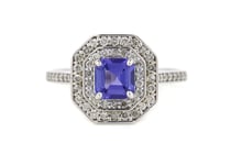 14K WHITE GOLD, TANZANITE AND DIAMOND, DOUBLE...