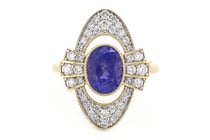 14K YELLOW GOLD, TANZANITE AND DIAMOND,...