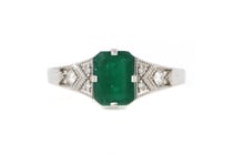 14K WHITE GOLD, EMERALD AND DIAMOND, DRESS RING....