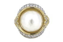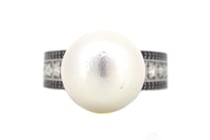 14K YELLOW GOLD, WHITE CULTURED SOUTH SEA PEARL,...