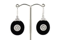 14K WHITE GOLD, ONYX AND DIAMOND, DROP EARRINGS....