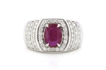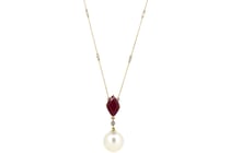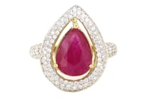 14K WHITE GOLD, RUBY AND DIAMOND, TEARDROP...