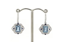14K WHITE GOLD, AQUAMARINE AND DIAMOND, ORNATE...