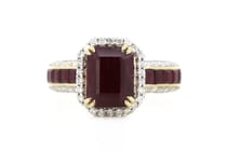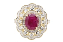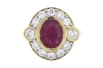 14K YELLOW GOLD, RUBY AND DIAMOND, ORNATE DROP...