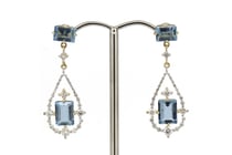 14K YELLOW GOLD, AQUAMARINE AND DIAMOND, DROP...