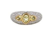 14K WHITE GOLD, FANCY YELLOW DIAMOND AND DIAMOND,...