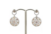 14K ROSE GOLD AND DIAMOND, HALO DROP EARRINGS....
