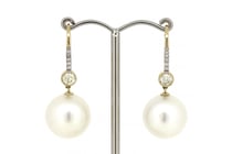 14K YELLOW GOLD, WHITE CULTURED SOUTH SEA PEARL...