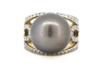 14K YELLOW GOLD, BLACK/GREY CULTURED TAHITIAN...