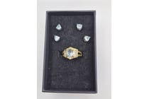 FAUX GOLD GLASS STONE RING WITH 2 X PAIRS 925...