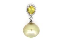 14K WHITE GOLD, YELLOW SAPPHIRE, GOLDEN CULTURED...