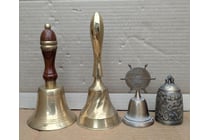 COLLECTION OF OLD BRASS BELLS WITH...