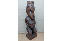 MAORI KAURI TEKO HARDWOOD HAND CARVING WITH PAUA...