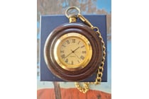 TIMBER CASED QUARTZ POCKET WATCH WITH CHAIN Item...