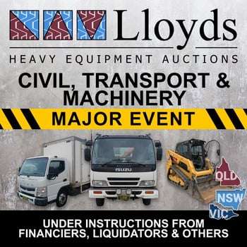 Highest Price With a dedicated team and proven track record, you can rest assured to achieve the highest price at auction. Fast Payment Once your lots have sold, the payment is processed and everything is promptly handled by our friendly team. Simple to List Our hassle free platform makes selling as easy as possible, ensuring a smooth and safe experience for all sellers. Submit your details using the form below & we will be in touch fast. Name (Required) First Last Phone (Required) Email (Required) State (Required) QLD NSW VIC SA WA NT ABN or ACN (Required) Category (Required) Transport EquipmentCivil and Machinery EquipmentMining and EarthmovingAgricultureManufacturing and EngineeringCommercial Fleet Tell us a little bit more... Send Current Civil, Transport & Machinery Auctions At Lloyds Auctions, we are Australia’s premier destination for heavy equipment and machinery sales. Specialising in a comprehensive range of heavy-duty vehicles, we offer auctions for bulldozers, excavators, dump trucks, forklifts, tractors, and many more. Catering to diverse needs, our inventory spans from construction and earthmoving equipment to civil and agricultural machinery. Thu, 09 Apr 7:00 PM Fri, 10 Apr 2:00 PM Fri, 10 Apr 2:00 PM Tue, 14 Apr 7:00 PM Wed, 15 Apr 10:00 AM Wed, 15 Apr 10:00 AM Wed, 15 Apr 11:00 AM Wed, 15 Apr 11:00 AM Wed, 15 Apr 12:00 PM Wed, 15 Apr 2:00 PM Wed, 15 Apr 2:00 PM Wed, 15 Apr 2:00 PM Wed, 15 Apr 3:00 PM Wed, 15 Apr 3:00 PM Wed, 15 Apr 4:00 PM Thu, 16 Apr 7:00 PM Wed, 22 Apr 2:00 PM IT'S EVEN POSSIBLE TO SELL TO LLOYDS - CLICK HERE PREFER A CHEQUE? LEARN MORE ABOUT LLOYDS IMMEDIATE ASSET & COMMERCIAL FLEET PURCHASE OPTIONS.Unlock the potential of your assets immediately. Our team specialises in strategic portfolio acquisitions, offering seamless transactions for your diverse range of asset holdings. Whether you’re streamlining your business or seeking new opportunities, we provide tailored solutions to maximise the value of your asset portfolio. Let us guide you through the process with expertise and confidentiality, ensuring a smooth transition and realising the full potential of your investments. Contact us now to explore how we can elevate your portfolio to new heights. Contact our expert buying team! Name (Required) Phone (Required) Email (Required) State (Required) QLD NSW VIC SA WA NT ABN or ACN (Required) Asset/s to Sell (Required) Tell us about your asset's (Required) PRE-AUCTION ADVANCED VENDOR CASH - FIND OUT MORE CASH RELEASE! LIST YOUR ASSETS USING OUR SECURITY PLATFORM – NO FINANCIALS REQUIRED. Learn more about advanced partial vendor payments with Lloyds.Whether your business needs help with cash flow, repaying debt and overheads or purchasing more assets for the business, advanced partial vendor payments could be the short term solution for you.You can secure fast cash for assets that you own against your business.What do you need to apply?1. An active ABN or ACN. 2. Asset must be owned outright.3. Willing for assets to be held at Lloyds premises.Our partnership with Asset Based Lending means that we can help your business navigate those short term financial challenges.Whether its for a single asset or multiple assets, this opportunity can be applied for against the following asset classes; transport and trailers, inventory stock, aircraft & aviation, vehicles, recreational vehicles (RV), marine, civil & heavy equipment. Contact our finance funding partner today! Name (Required) Phone (Required) Email (Required) State (Required) QLD NSW VIC SA WA NT Tell us about your asset's (Required) ABN or ACN (Required)