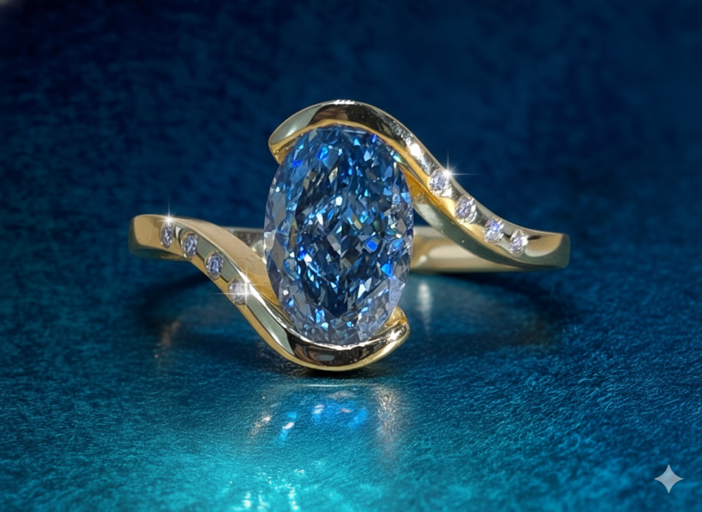 14K YELLOW GOLD OVAL LAB GROWN RING BLUE - VS1 Fancy Colour Lab Grown Diamond Ring Markings: 14CT Condition: Good - Refer Images 0162959+19CROSSDOCK
