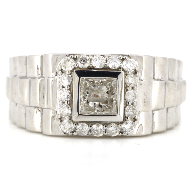 14K WHITE GOLD AND DIAMOND, GENTS RING.