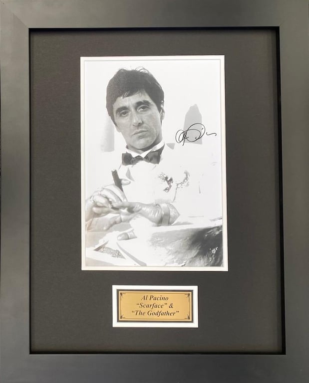 AL PACINO PHOTOGRAPH WITH FACSIMILE SIGNATURE Framed Using Double Mats, A Plaque, Glass And A Black Frame. Size: 53 X 2 X 43Condition: Good - Refer To Images488249+3