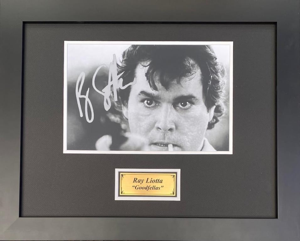 RAY LIOTTA PHOTOGRAPH WITH FACSIMILE SIGNATURE Framed Using Double Mats, A Plaque, Glass And A Black Frame. Size: 43 X 2 X 53Condition: Good - Refer To Images488249+6