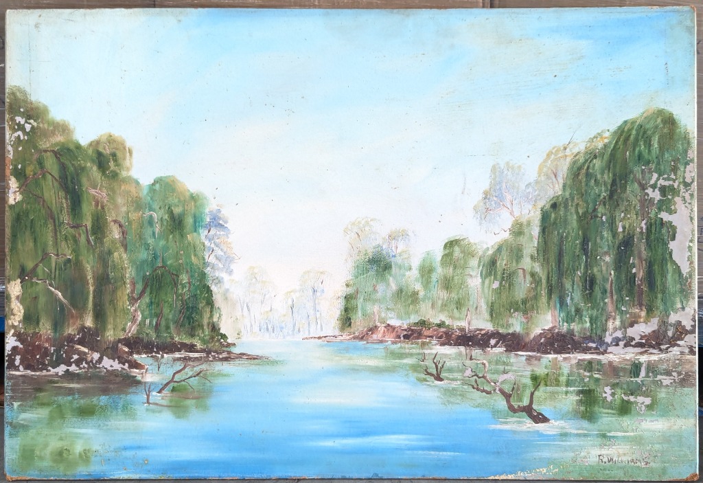 R.WILLIAMSOriginal Oil Painting On BoardTitle: UntitledImage Size: 62cm x 90cmSignature Details: Signed Lower RightCondition: Fair - Paint Flaking584911+49