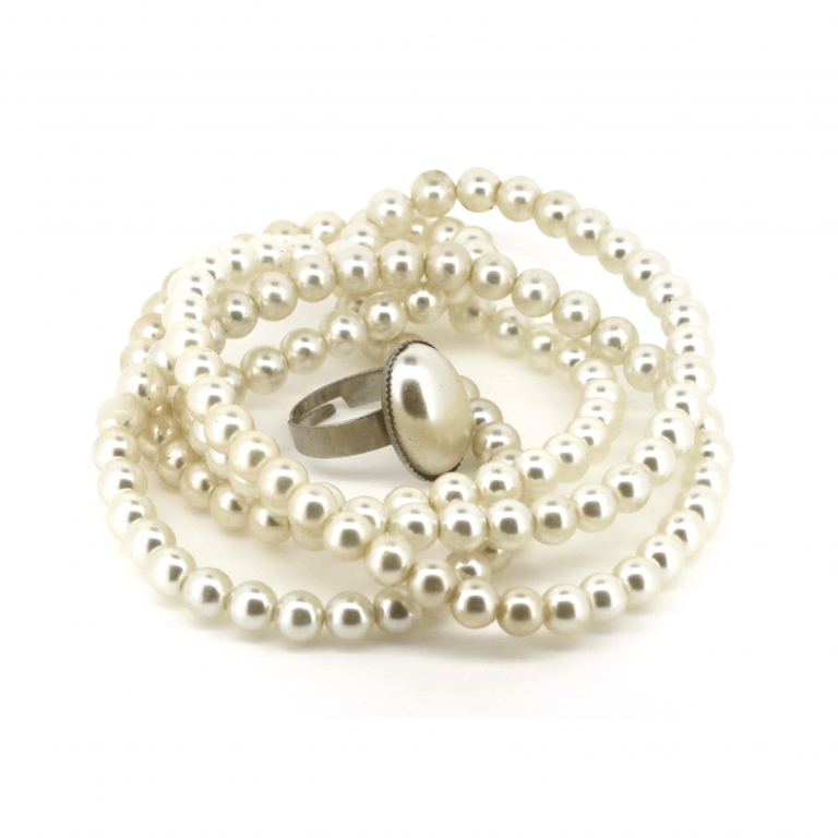VINTAGE BASE METAL, IMITATION PEARL RING AND IMITATION PEARL NECKLACE STRAND. Ring Size Is Expandable Upward From M. Necklace Length Is 80Cm. Total Item Weight Is 44.97 Grams. Condition: Pre-Owned. Condition: Good - Refer Images 0645831+1023