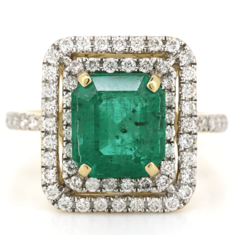 14K YELLOW GOLD, EMERALD AND DIAMOND, DOUBLE HALO RING. The Centre Features, One Emerald Cut, Emerald (2.83Ct, Moderately Inclusions), 4 Claw Set. Surrounding The Centre In A Double Halo And Decorating The Band Are, 68 Round Brilliant Cut, Diamonds (0.59Ct, G-H Colour, Si1-Si2 Clarity), Micro-Claw Set. Ring Size O 1/2. Valuations Provided by an Independent Third-Party Professional Not Directly Associated With Lloyds Auctions at AUD $$24,000.00This valuation has been conducted by an independent third-party professional. The valuation amount is an assessment by the issuing valuer and does not reflect the auction value of the item. Any inquiries regarding the valuation should be directed to the issuing valuer (refer to contact details on the certificate), as Lloyds Auctions has no affiliation or influence over the valuation, the valuer, or the stated amount. Condition: Good - Refer Images 0645831+1088