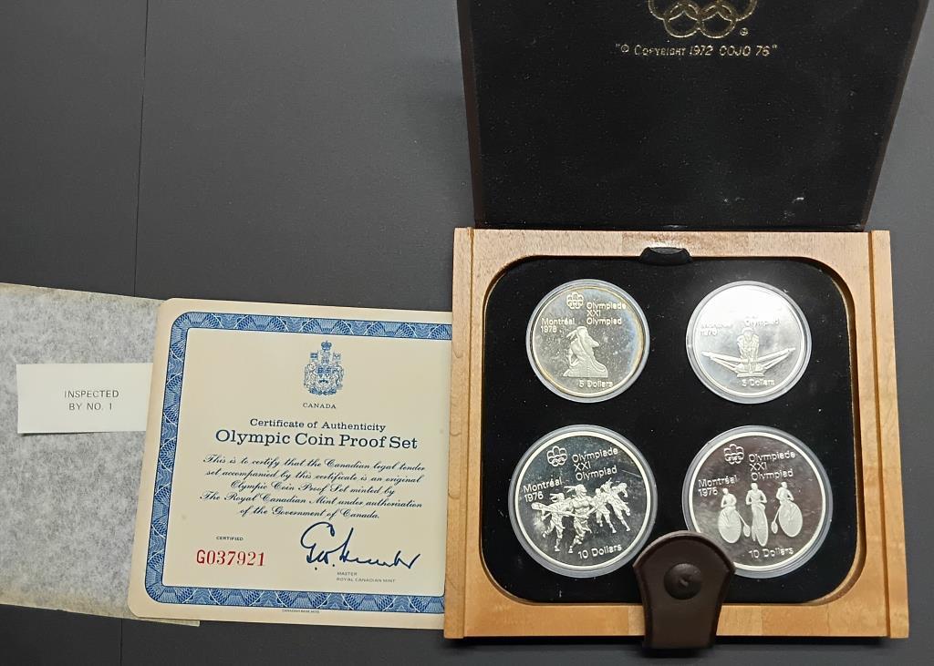 1972 PROOF 4 OUNCES FINE SIVER CANADA OLYMPIC SET IN WOODN BOX AND COA OVER 4 OZ OF SILVER RARE 488063+11