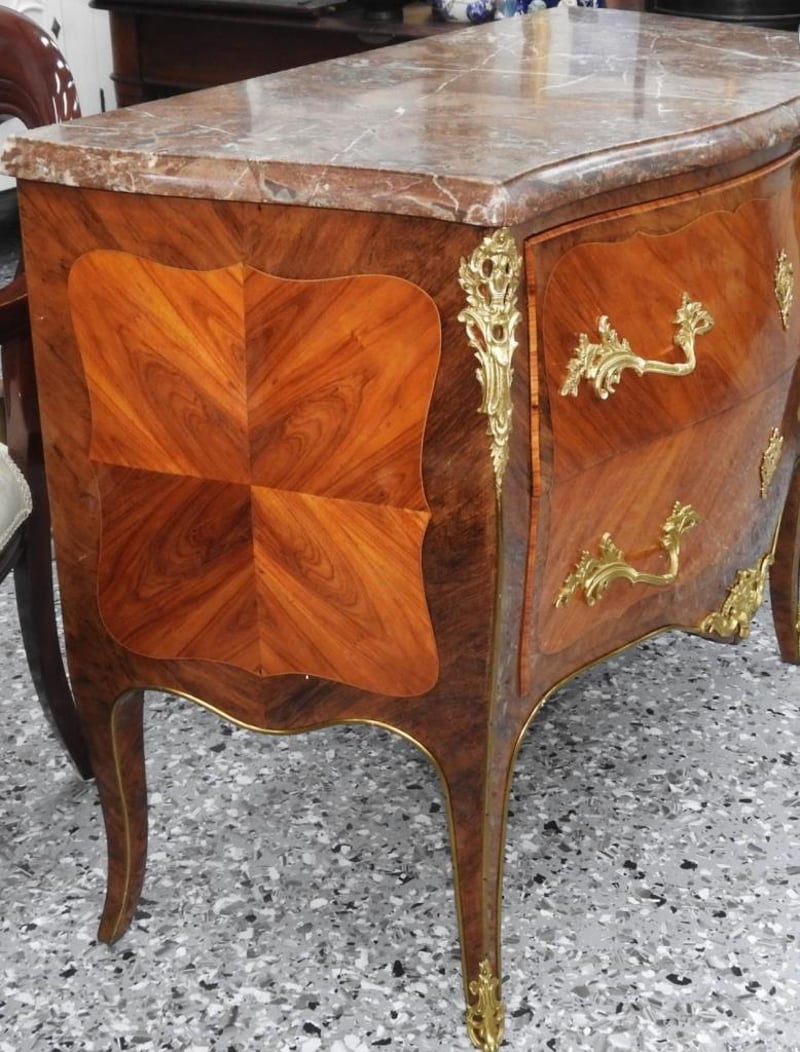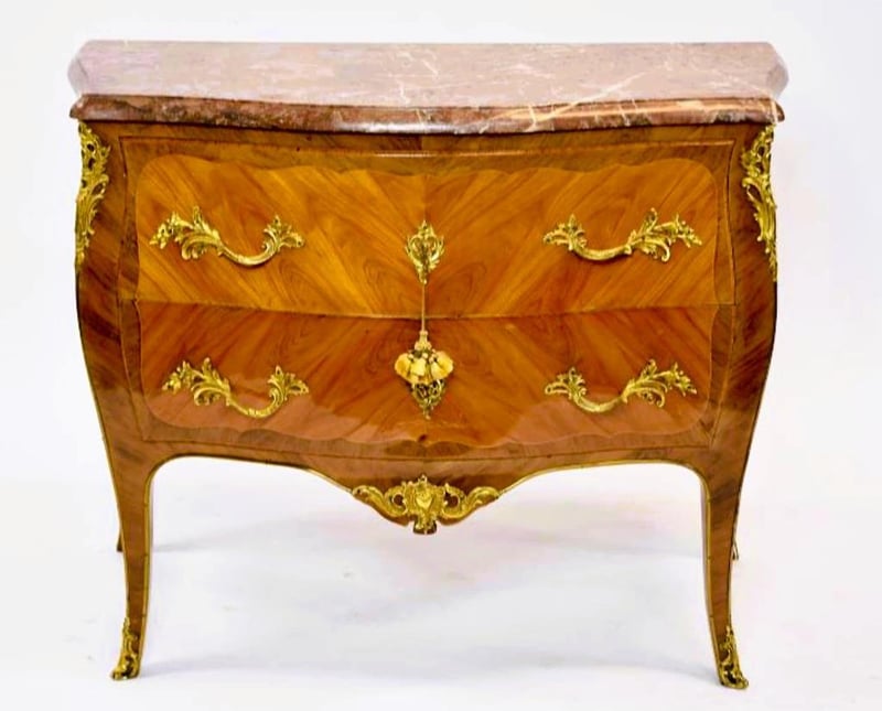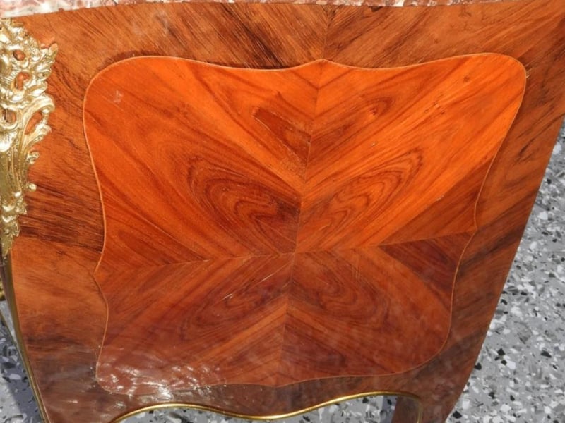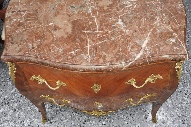 Gilt Ormolu Mounts And A Fitted Carrara Marble Top And Original Key, Solid Oak Draws