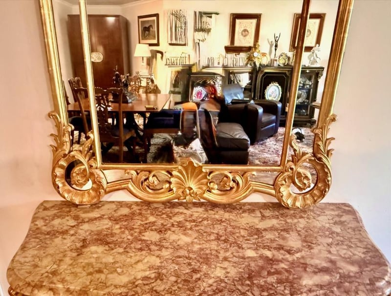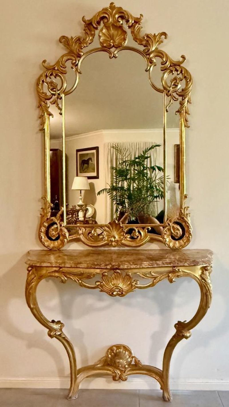 FRENCH C 1840 ROCOCO STYLE GILT MIRROR AND CONSOLE TABLE