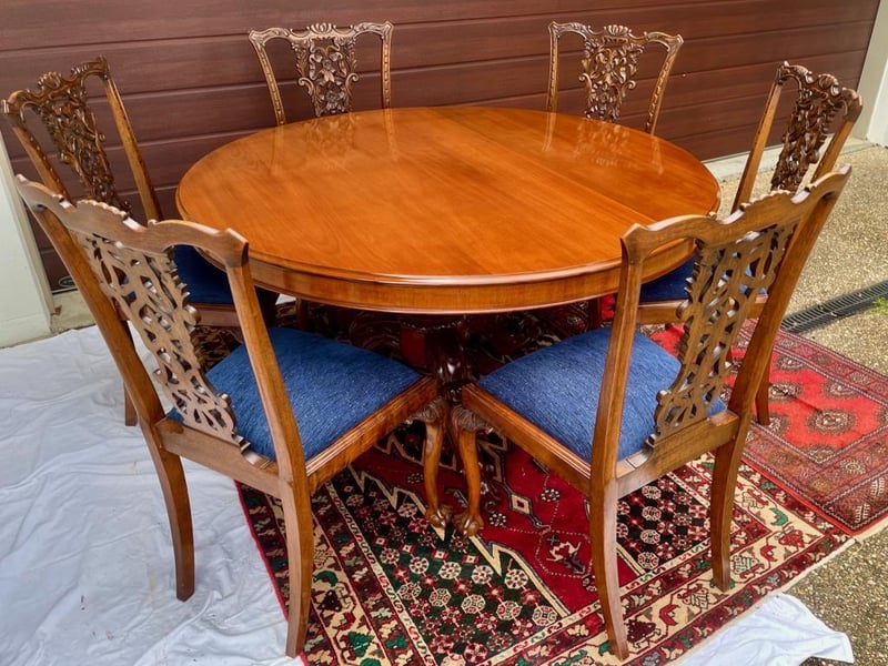 Mahogany Top With All Over Patinatio, Carved Mahogany Pedestal Base With Brass Casters