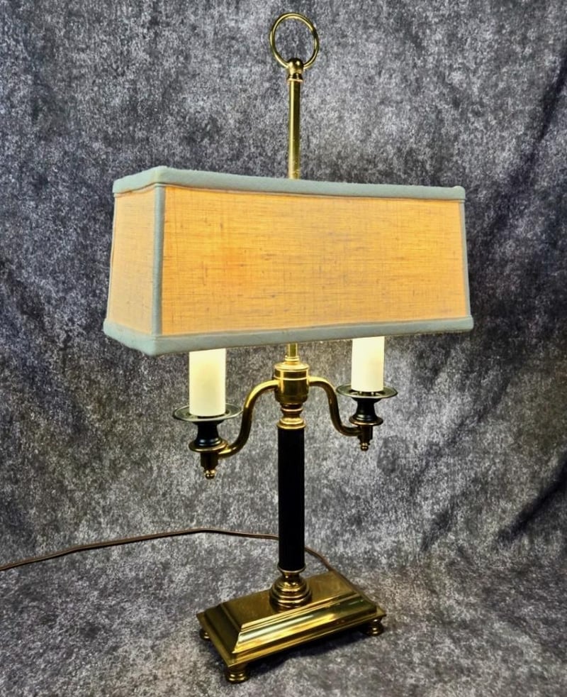 FRENCH VINTAGE BOUILLOTTE DESK LAMP 2 Candelabra Bouillotte Lamp, Solid Brass Base Dimensions: 57Cm H X 32Cm W Condition: Good - Refer To Images 586267+32