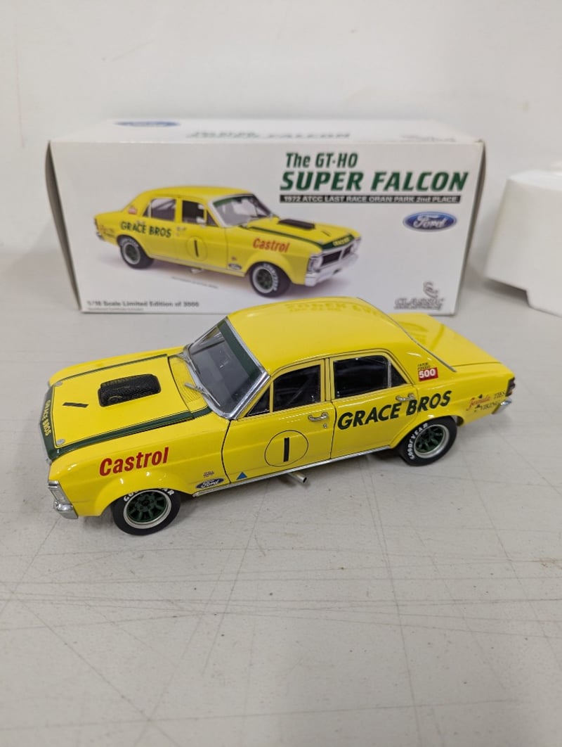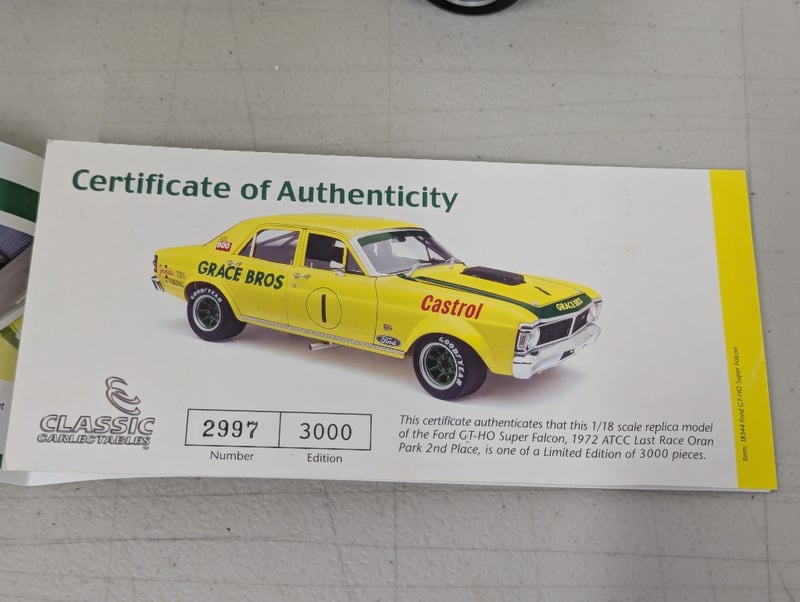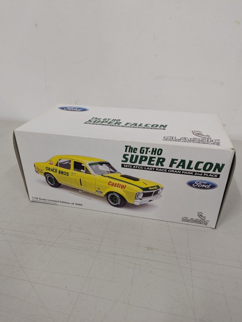 MODEL CAR, FORD, THE GTHO, CLASSIC CARLECTABLES, 1/18 SCALE LIMITED EDITION OF 3000, 1972 ATCC THE LAST RACE ORAN PARK 2ND PLACE