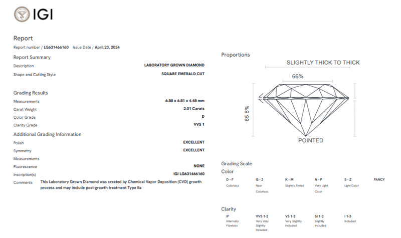 Please note that while all lab grown diamonds listed include certification, the report number or identification may vary upon arrival. This is due to standard manufacturing and batching processes. However, the diamond’s specifications — including carat, color, cut, and clarity — will match or may even exceed those advertised.